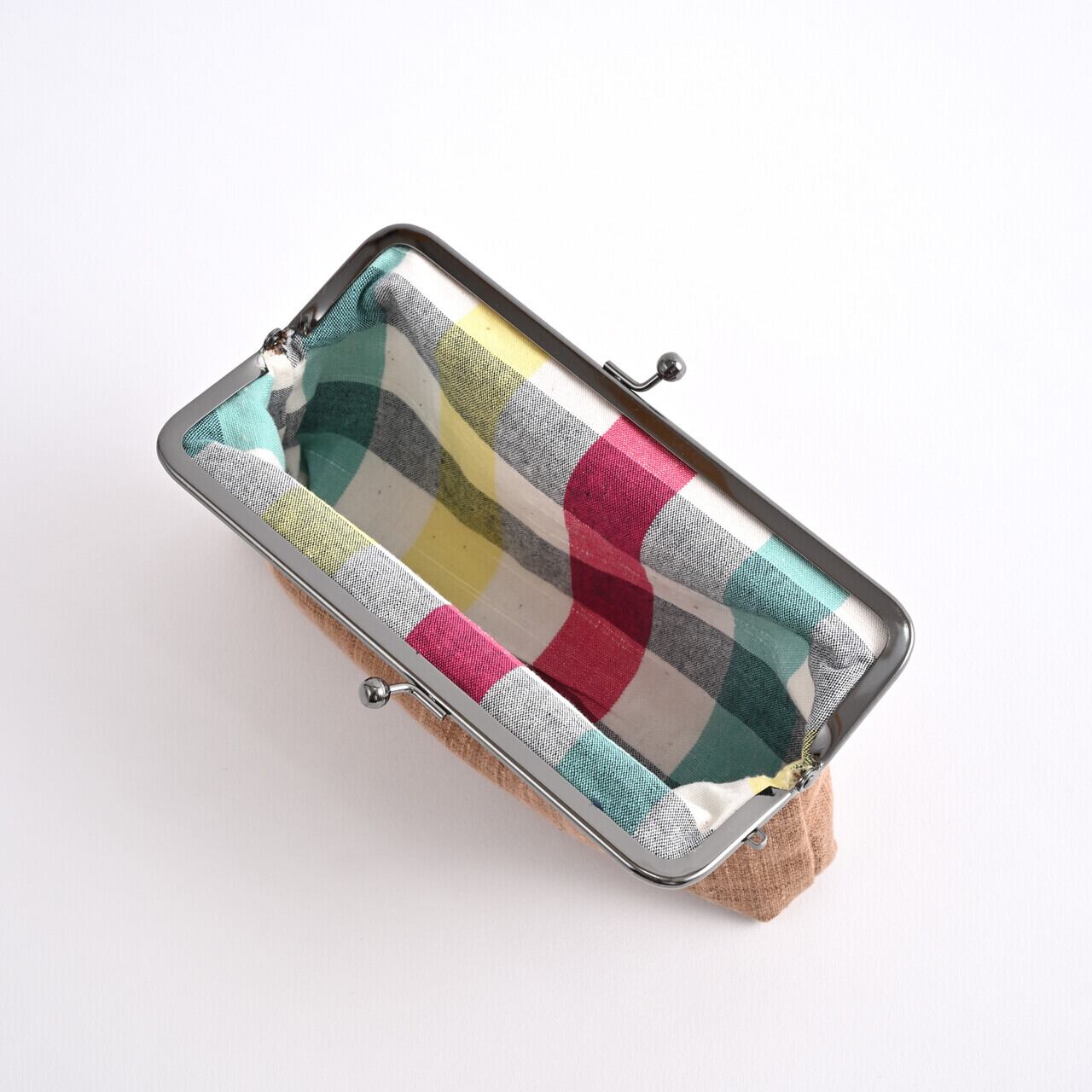 ぽってりしたフォルムのがま口は、化粧ポーチやアクセサリーケースとしてもお使いいただける幅広いアイテムです。口が大きく開くので、使いやすい仕様になっております。