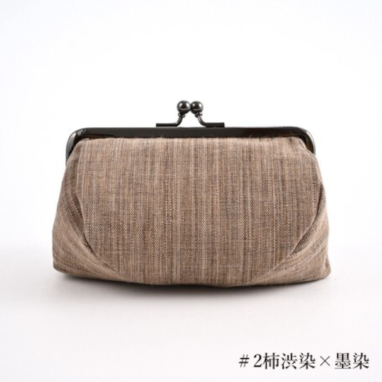 柿渋や墨などを使い、糸から染め交織いたしました。糸から染める柿渋染や墨染は、糸1本1本を何度も染料に浸けて染める手間のかかる作業です。