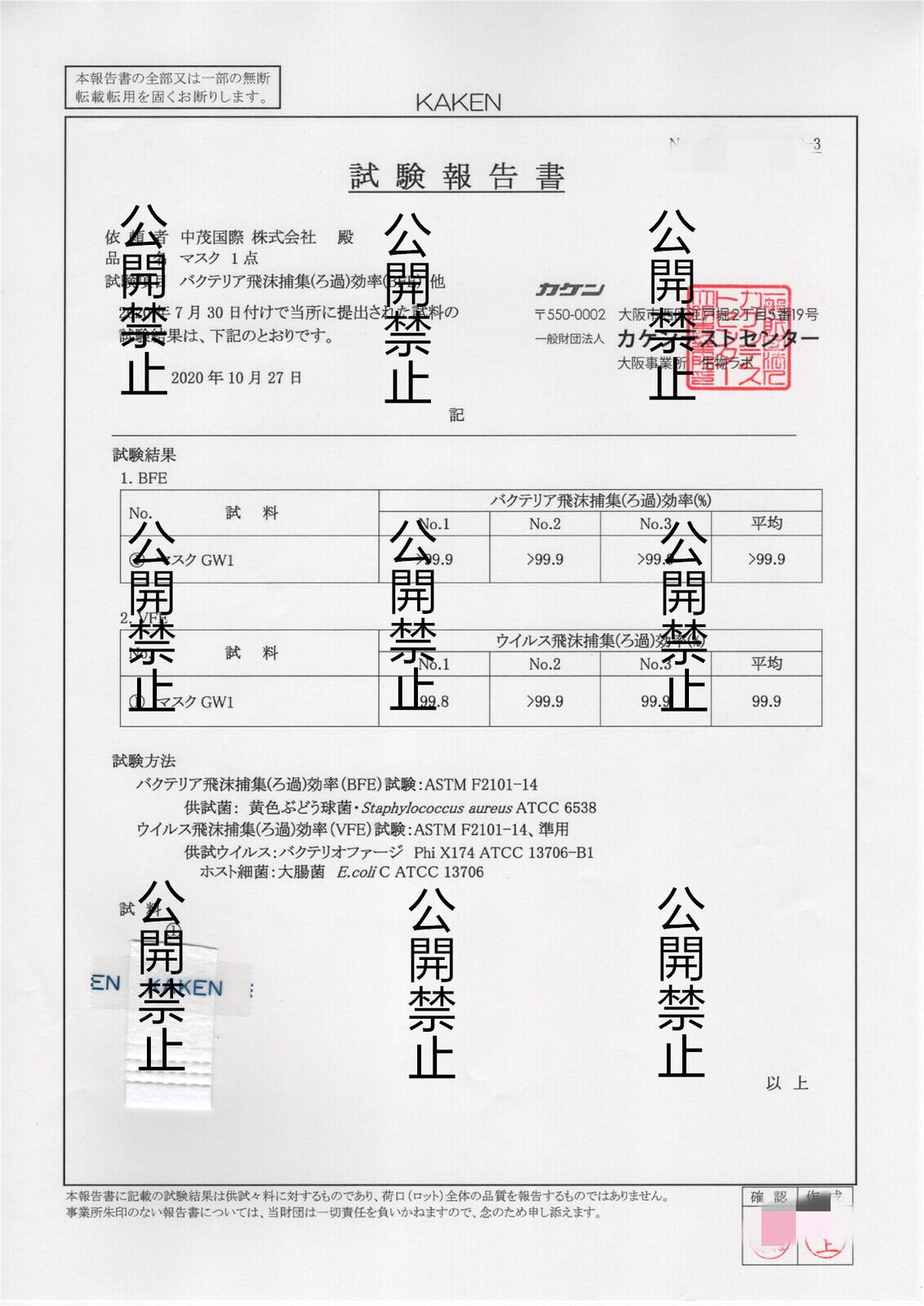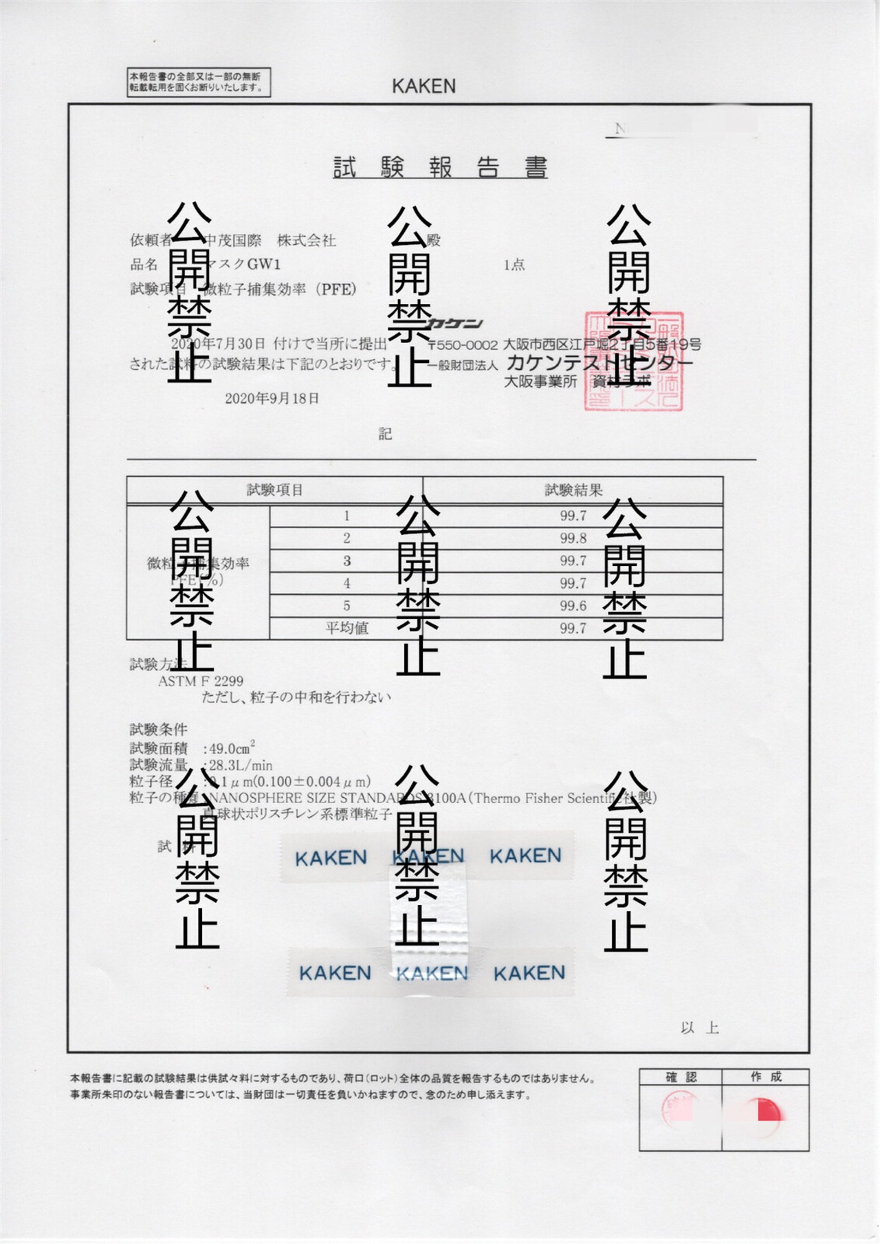カケンテストセンター 女性/子供 小さめ 三層不織布マスク 99% 花粉/PFE /VFE/BFE/ウイルス飛沫 白