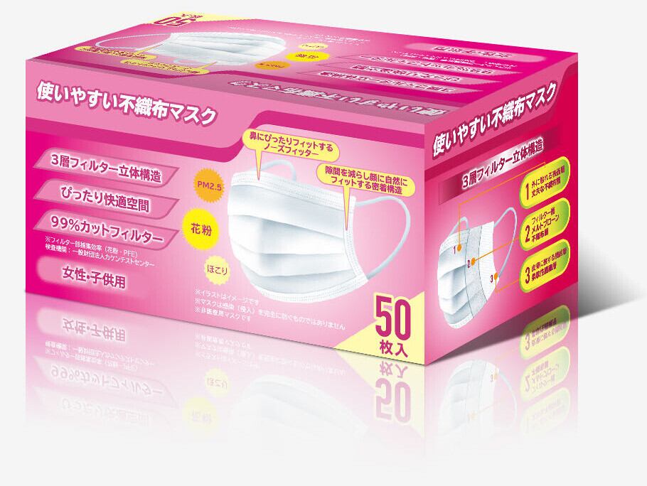 ●在庫あり、順次発送となります。●平ゴムで耳に優しい、さらにやわらくなった不織布で息苦しくなににくいです。●日本国内検査をクリアしたマスク。透過率99%、証明書提供可。●日本国内発送、安心!安全!●フィルター部捕集効率(花粉・PFE・BFE・VFE)検査機関: 一般財団法人カケンテストセンター●安定供給、毎週入荷しています。●転売は日本国の法令違反となりますので、ご注意下さい●中国政府認定工場,1日あたり、50万枚生産可能。●自社工場生産,大量注文ご相談。●ご注文後のキャンセルは一切受付出来ません。●小箱50枚いり。●卸売販売可能。