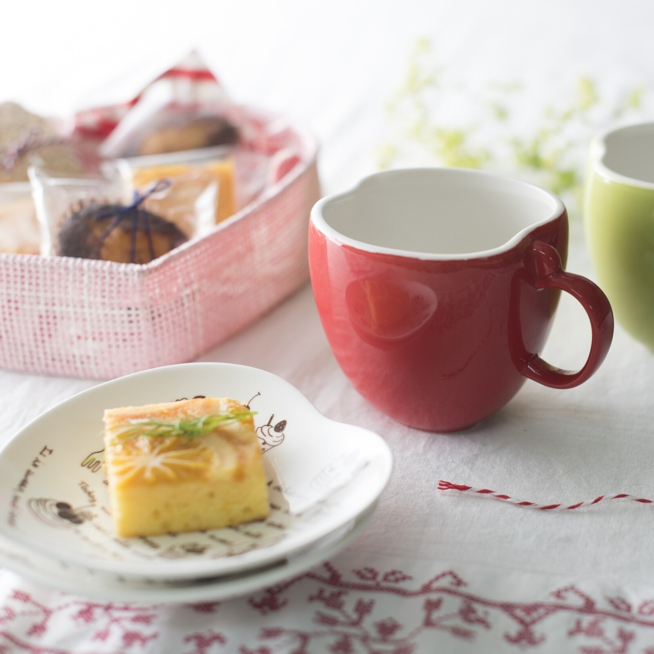真っ赤なリンゴとやさしいグリーンのリンゴ型マグカップがかわいいアップルシリーズ。ハート型のプレートにボウル、カゴもついて乙女心いっぱいのキュートなセットです。 結婚のお祝いや出産内祝いの贈りものにおすすめです。
