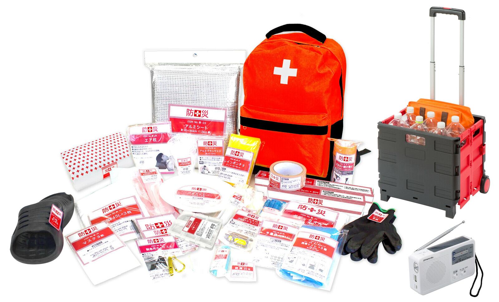 ●一家に1袋ではなく、1人に1袋ずつ用意することが重要であるといわれています。本品は、「命を守るために必要なもの」に特化したアイテムを揃えました。
