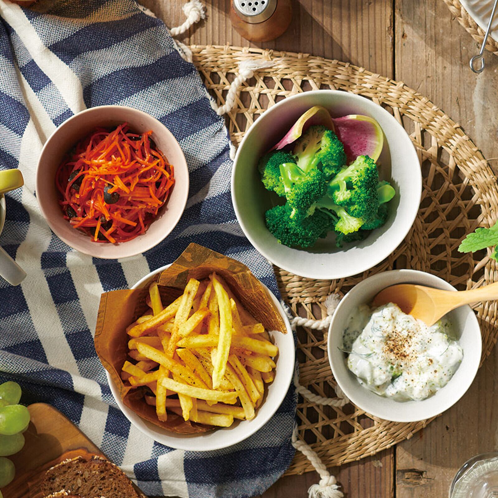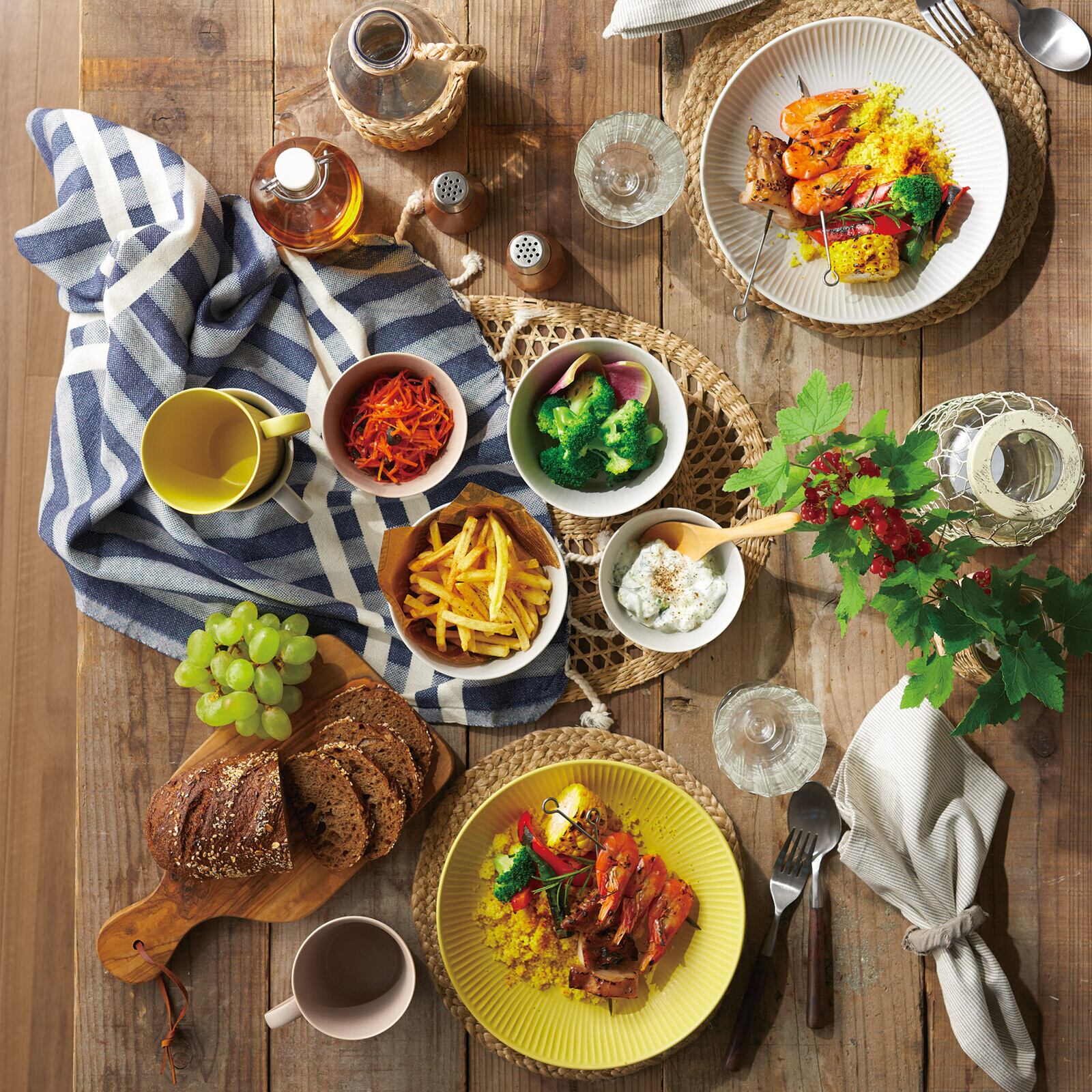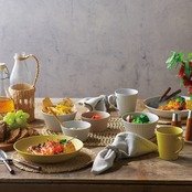 側面のラインがおちついた色合いにおしゃれ感を添えてくれるデザイン。シンプルな形状とやさしい色を用いてどんな食卓にも馴染む食器に仕上げました。