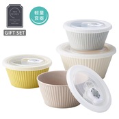 Lサイズ1個、Sサイズ3個 4色のアースカラーがおしゃれなセットです。普段使いできて、でもちょっとワンラックアップしたしょうなオシャレカフェの雰囲気を演出してくれます。冷蔵庫から電子レンジ、食卓。そして残ってしまったらまた冷蔵庫へ便利な保存パックセットです。フタを外せば食器としても使えるすぐれもの!